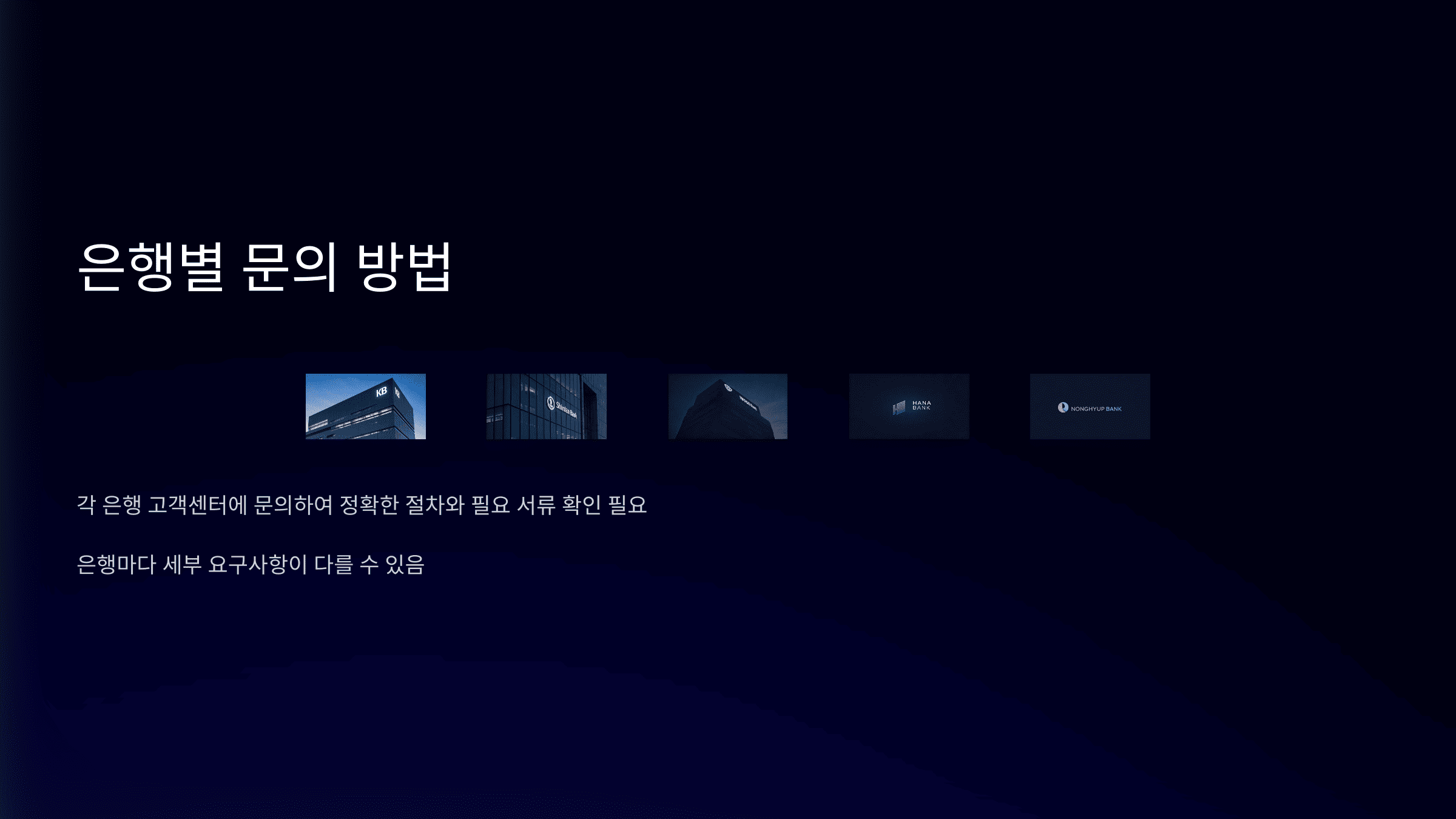 은행마다 조금씩 다르니, 사전에 은행에 문의해 필요한 서류를 꼼꼼히 확인하세요.